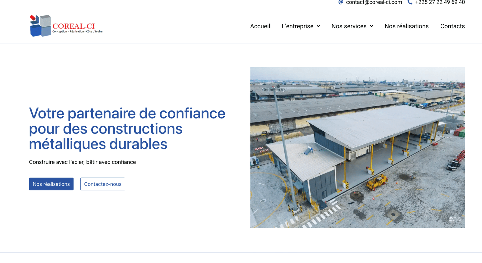 Spécialisée en charpente métallique, couverture, bardage, génie civil et métallerie, COREAL-CI est un acteur de référence dans le secteur du BTP en Côte d’Ivoire.